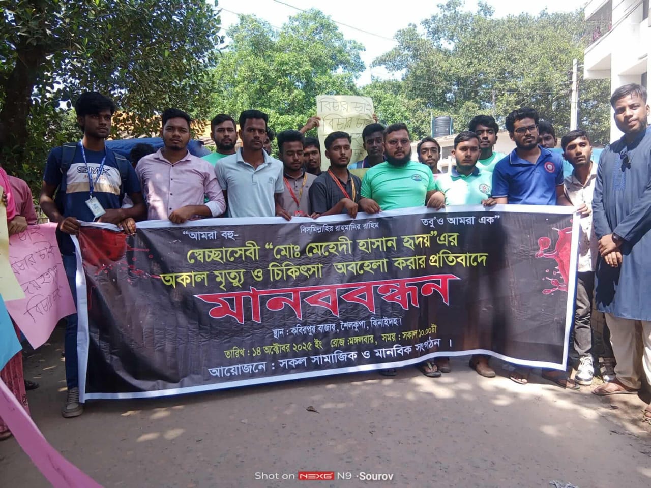 ঝিনাইদহের শৈলকূপায় চিকিৎসা অবহেলার কারণে প্রাণ হারিয়েছেন এক মানবিক স্বেচ্ছাসেবী যুবক মেহেদী হাসান হৃদয়।
